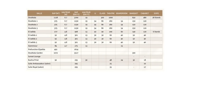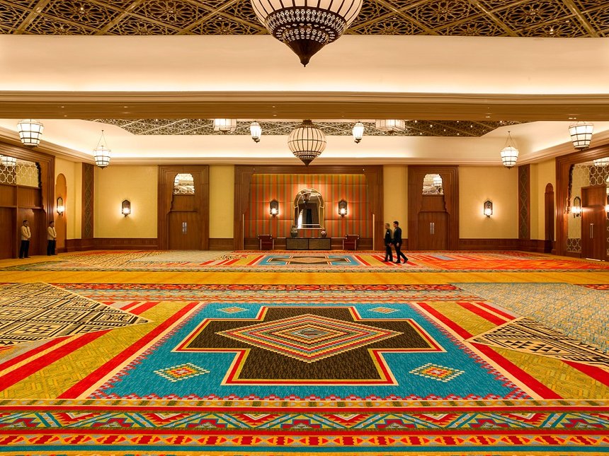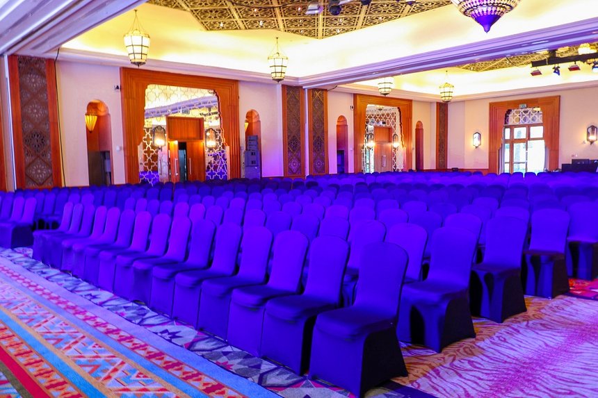 Mazagan ne fait pas les choses à moitié. Son centre de conférences de 2 000 m² figure parmi les plus vastes du pays. Modulable et sans piliers, il peut accueillir jusqu’à 1 300 participants en configuration théâtre et 1 100 en banquet, avec un ballroom de 1 128 m² baigné de lumière naturelle.