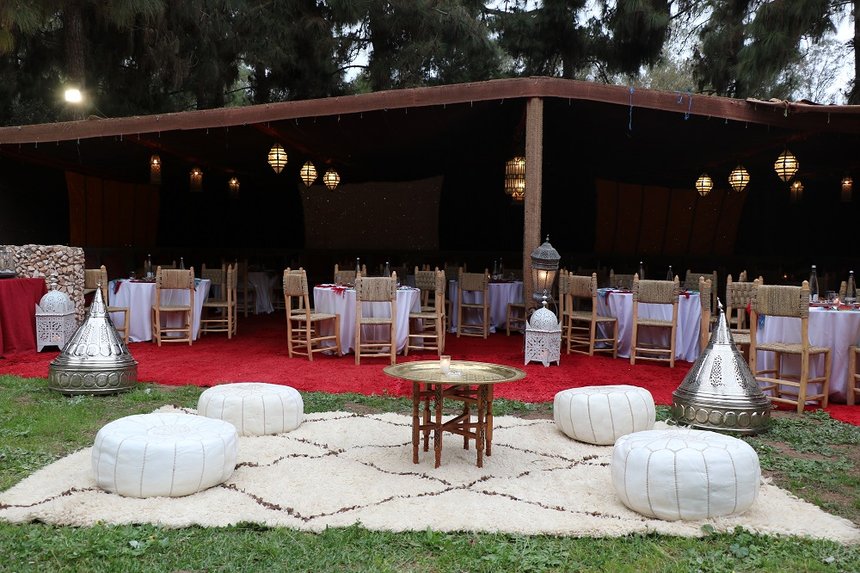 - Le restaurant Al Firma, sous tente berbère, peut recevoir jusqu’à 120 convives dans une ambiance authentique, idéale pour les soirées de clôture ;