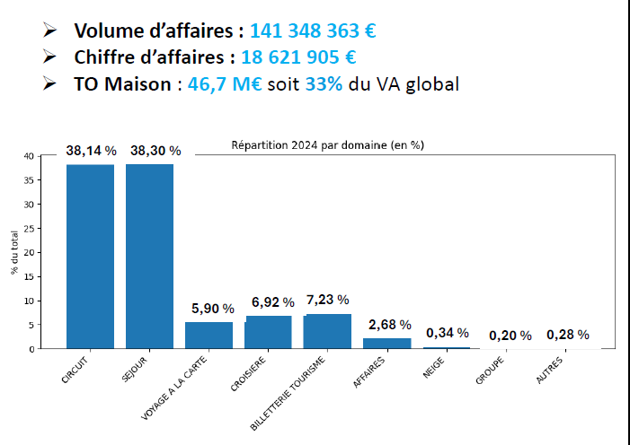 La structure des ventes reflète l’ADN du réseau : 38 % de circuits, 38 % de séjours, et une montée progressive du sur-mesure. La croisière reste encore marginale, même si des actions de formation sont en cours pour accompagner un développement futur.