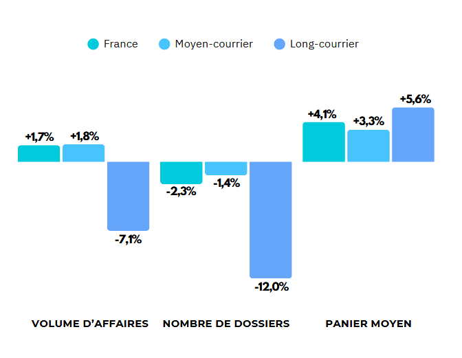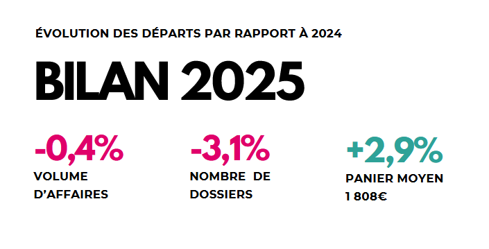 Sur l’ensemble de l’année 2025, le nombre de voyageurs affiche un léger recul d’environ 3 % par rapport à 2024, tandis que le budget moyen par voyage, en progression d’environ 3 %.