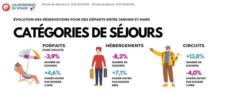 Les réservations pour le premier trimestre 2026 confirment cette recomposition : les Français sont un peu moins nombreux à partir, mais choisissent des séjours mieux valorisés, en particulier à l’étranger.