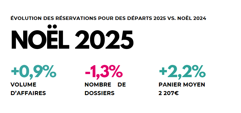 Pour Valérie Boned, Présidente des Entreprises du Voyage : « Les chiffres de novembre et les prévisions pour Noël montrent clairement que les arbitrages budgétaires des Français pour les fêtes de fin d’année ne se font pas au détriment des voyages : au contraire, ils acceptent de consacrer davantage de budget à chaque séjour. La demande se déplace vers l’international, en particulier sur le moyen-courrier et les voyages organisés, et se répartit différemment selon les profils de clients. Pour les opérateurs de voyages, l’enjeu est désormais d’ajuster l’offre à cette évolution. »