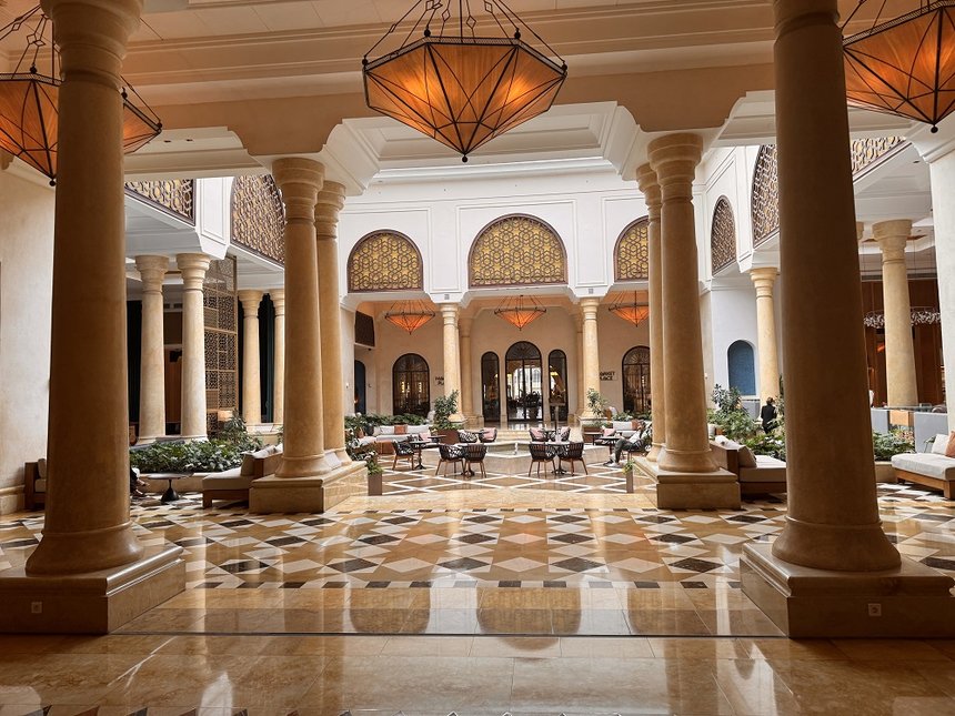 Pensé comme une « médina » moderne aux murs ocres et toits de tuiles vertes de Fès, le resort s’érige tel un vaste palais jusqu’à une plage de 7 km, à la fois sauvage et parfaitement aménagée. Dans ce complexe, patios, arcades, zelliges, lanternes en cuivre et bassins réfléchissant la lumière composent un ensemble harmonieux où l’architecture marocaine dialogue avec les lignes contemporaines du luxe international. Mazagan a ainsi été désigné comme l’un des 100 plus beaux hôtels du monde par les Hotels & Lodges Awards. Et c’est tout à fait justifié.