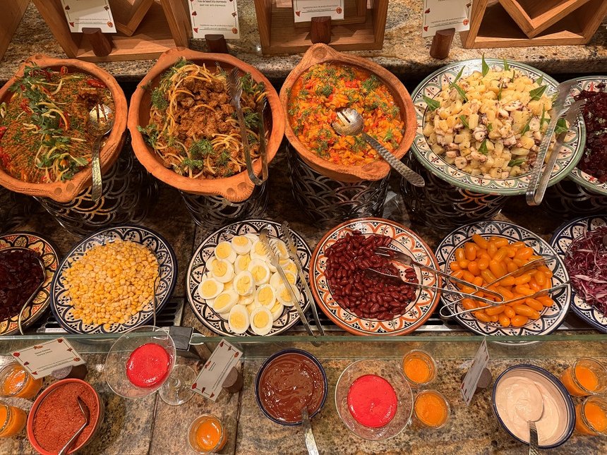 Market Place (230 couverts) : buffets généreux aux accents marocains, italiens, asiatiques et indiens. Show-cooking autour du four traditionnel, mezzés et grillades. Chaque soir, une cuisine du monde est mise à l’honneur. On vous recommande bien évidemment la soirée marocaine.