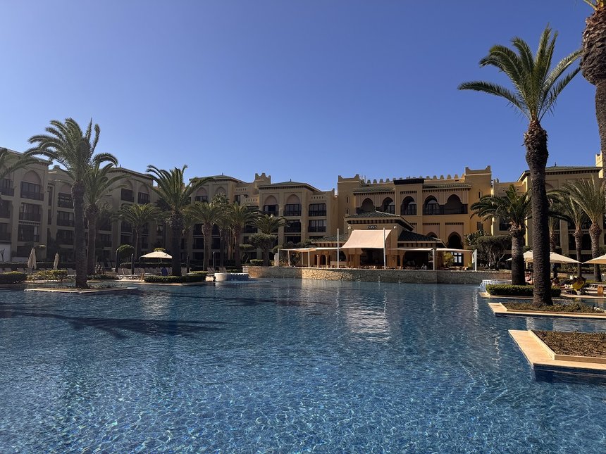 À 90 km au sud de Casablanca, le long de la grande plage d'El Haouzia, Mazagan Beach & Golf Resort déroule un domaine de 250 hectares entre océan et forêt d’eucalyptus mettant l’Atlantique à portée de rêve. Inauguré en 2009 et récemment rénové, le resort s’est imposé comme une destination loisirs « tout-en-un » : hébergement généreux, scène culinaire foisonnante, golf 18 trous signé Gary Player, spa marocain d’exception, kids & teens clubs ultra-complets, sports nautiques, discothèque et… le plus grand casino d’Afrique du Nord. Au centre de la « médina », une immense piscine-lagon invite à lézarder dès le matin.