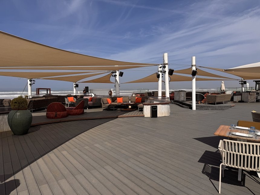 Sel de Mer (70 couverts) : le meilleur de l’Atlantique (huîtres d’Oualidia, pêche du jour à la plancha, en croûte de sel ou au four, ou vous pouvez faire votre choix via le bar à poissons, tous pêchés sur place : bar, loup, daurade, saint-pierre, homard). Parmi les spécialités : la crème de crustacés, la salade de homard bleu et les linguines aux gambas et crème de crustacés. Desserts signature.