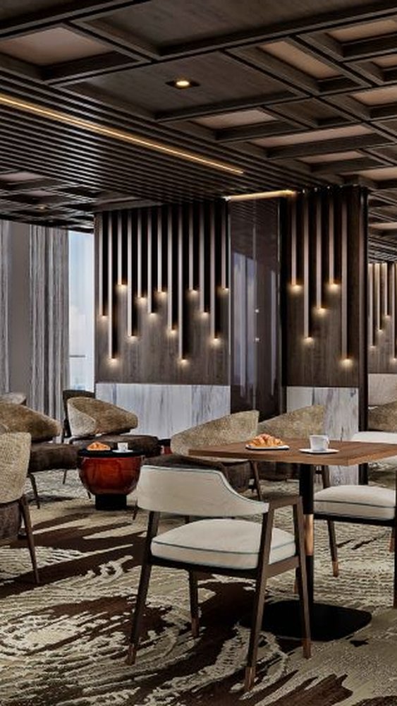 Réinventé pour EXPLORA III sous la forme d'un atrium sculptural sur deux niveaux, le Lobby dégage une impression de grandeur tout en restant chleureux, défini par des courbes sinueuses, des finitions texturées et un contraste riche entre les marbres Perlato di Sicilia et Sahara Noir.