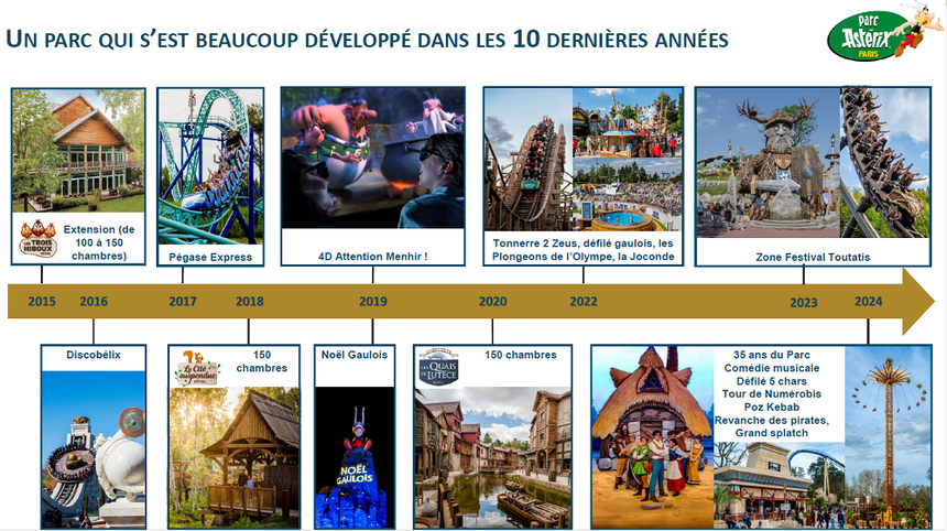 Le Parc Astérix déploie un programme de transformation ambitieux, réparti sur plusieurs étapes clés :